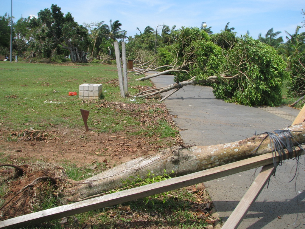 comparatively few local tropical trees lying down with their roots up. The local trees had mostly just lost some of