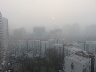 (From my bedroom window. That's the morning sun trying to break through the pollution on New Year's Day.)