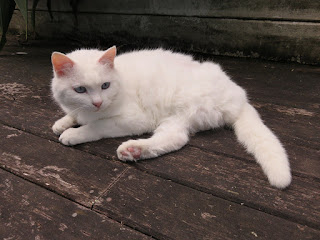 Here's a couple of photos of our 3-legged cat, taken today: